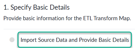 3. Under **Specify Basic Details**, click on \*\*Import Source Data and Provide Basic Details \*\*
