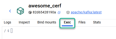 16. Go to the **Exec** portion of the docker image