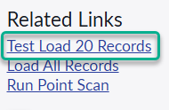 7. Under Related Links click on **Test Load 20 Records**