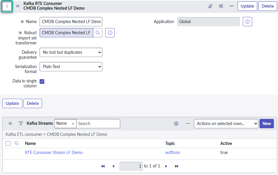 11. In the **Kafka RTE Consumer** screen, the Kafka Stream created will show as active. Press back