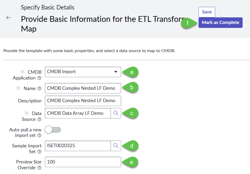 * b. Import set table label, this will populate the **Import set table name**