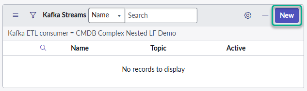 6. At the bottom part of the **Kafka RTE Consumer** screen within the **Kafka Streams** box , click **New**