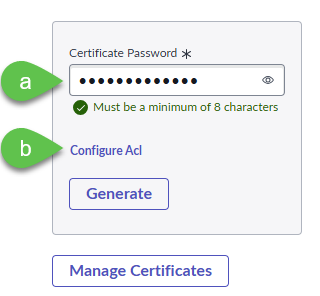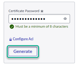 2. Set up the certificate password and ACL
